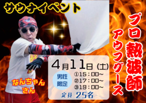 - ロウリュサービス/アウフグース — スタッフがストーンに水をかけ、タオルで熱波を送るイベント。本来のアウフグースに該当する