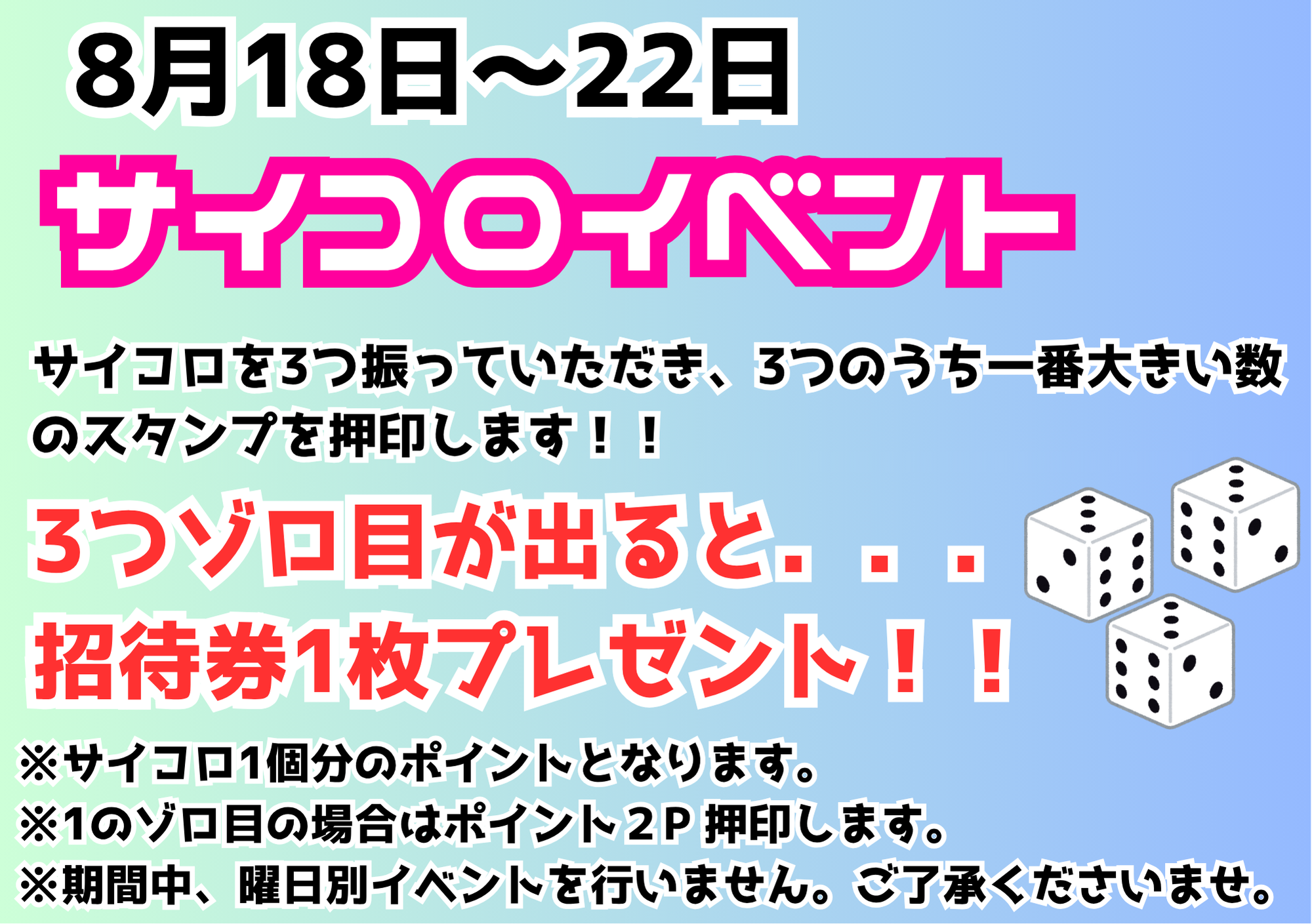 【8月18日~22日】サイコロイベント実施!