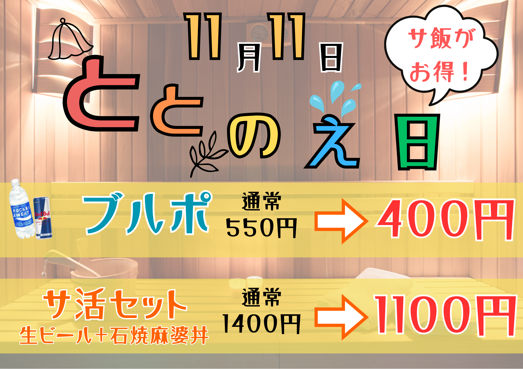サウナで「ととのう」にちなんだサ活応援特別割引を実施します!