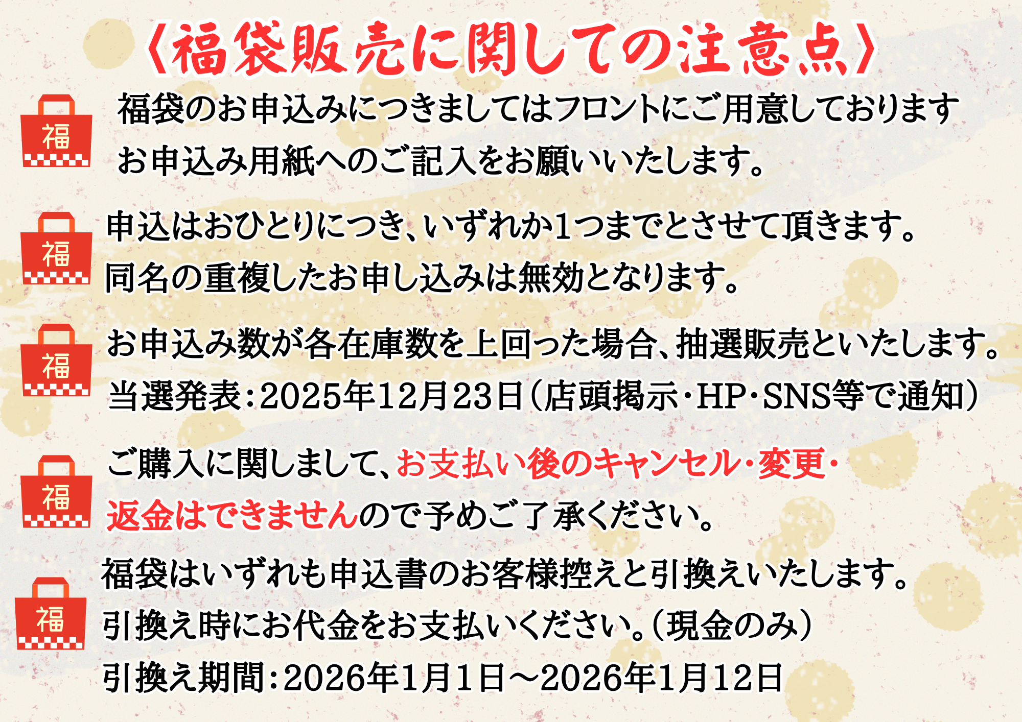 【12月10日~22日】福袋予約申し込みを開始しました。