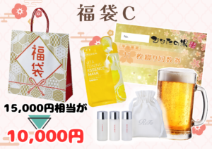 福袋A ¥1,500 ・・入浴招待券、ワンドリンク券、フェイスタオル、フェイスパック他