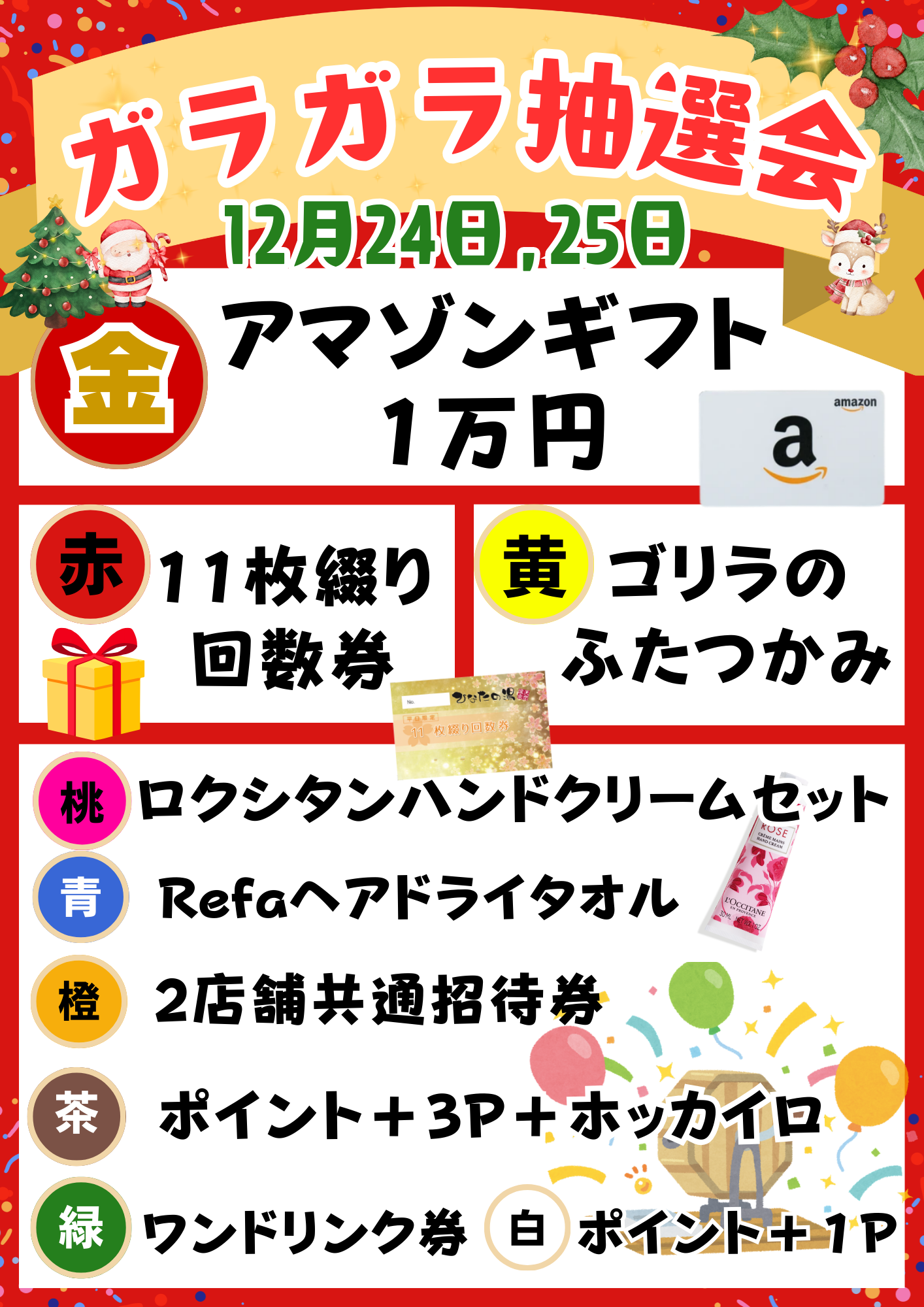 【12月24日・25日】クリスマスイベント!!ガラガラ抽選会