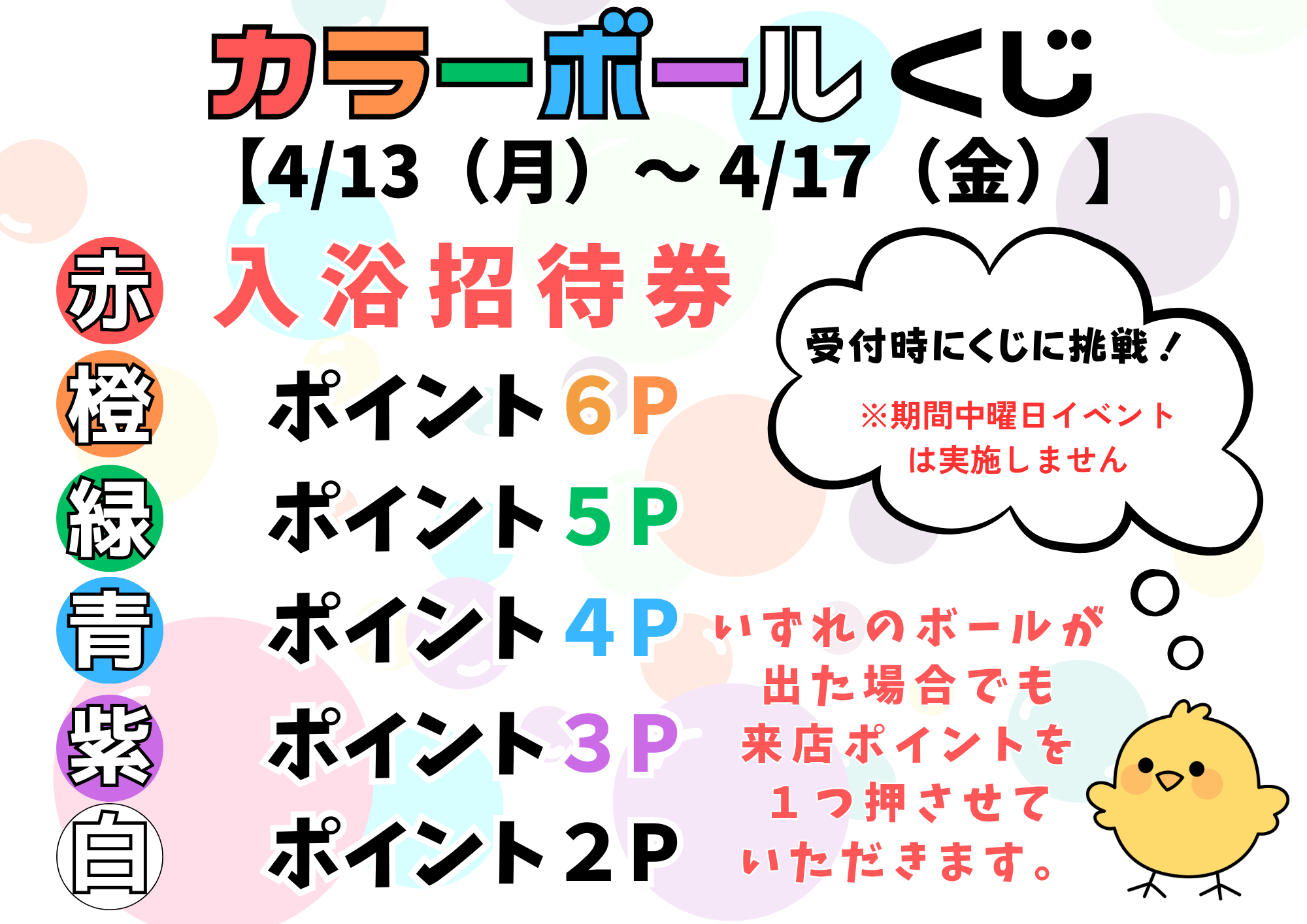 さらに赤色ボールを引かれた方には入浴招待券をプレゼントいたします!